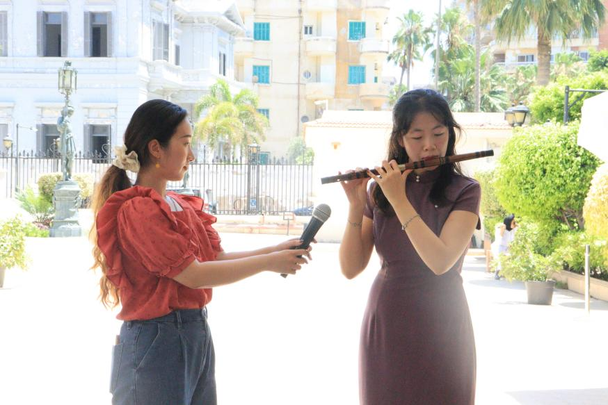 北语新闻网7月1日电(通讯员 马文博 摄影 马文博)6月26日,在埃及旅游和文物部、最高文物委员会及博物馆管理局主办下,由亚历山大皇家珍宝馆承办的“中埃两国非物质文化遗产的传承与传播”主题文化活动隆重举行。苏伊士运河大学孔子学院师生受邀出席,与来自中埃两国的嘉宾共同参与这一文化盛会。