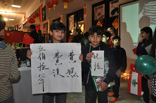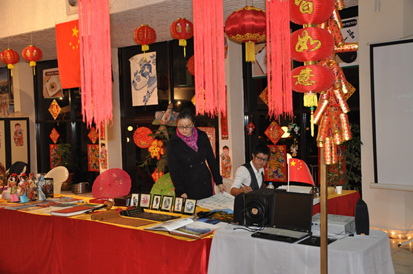 中国展位在历届美食节上都是最受欢迎的,今年,伊斯兰堡孔子学院的加盟,让中国展位更加引人注目。大红灯笼高高挂、福娃、童子、门神、中国结,把中国展位装扮得喜气洋洋。展品种类丰富,有竹简、民族乐器、书画、脸谱书签和各类书籍,五花八门。除了展品,孔院还设立了书法展位,到场的各国嘉宾围拢在展位的周围,欣赏孔院老师在宣纸上笔走游龙,把原汁原味的中华才艺彰显无遗,一面惊叹于中国文化的精妙绝伦。