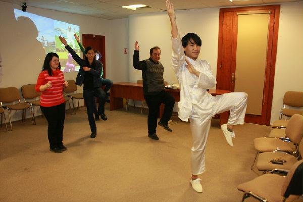 活动以锡比乌孔子学院汉语教师志愿马骏和李丽的太极拳表演开场。紧随极具表现力和冲击性的太极拳法之后,志愿者分别从中华武术的来源、中华武术与儒家思想的关系、武术流派、武术的当代影响、中国功夫电影的发展和功夫电影明星等各个层面为大家展示武术精神内涵。结合生动的图片及深入浅出的现场演讲,中华武术的魅力感染着在场的每一位嘉宾。