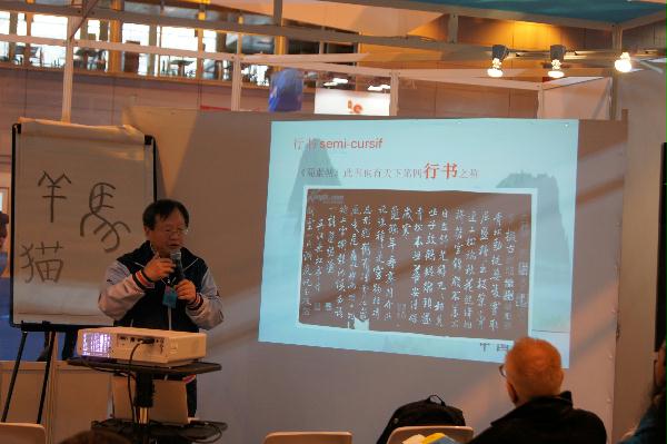 韩祝祥院长全程参与了三天的展会工作。展会首日他为自己翻译的中华文化丛书《千字文》、《三字经》等书做了签名售书活动;次日下午,按展会组织者的安排,韩院长在展会讲座厅举办了一场题为《汉字的诞生、演变与书法》的讲座,获得听众们、本土汉语教师及在座法国书法爱好者的好评。