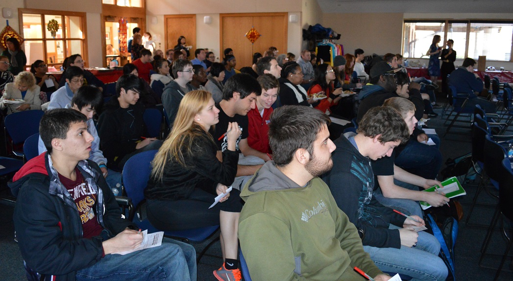 品尝着原汁原味的中国菜,观看着春晚节目集锦,被火红的中国结、灯笼、剪纸、春联、和福字围绕着,Sunnen Lounge活动厅里座无虚席,洋溢着过年的喜庆气氛。