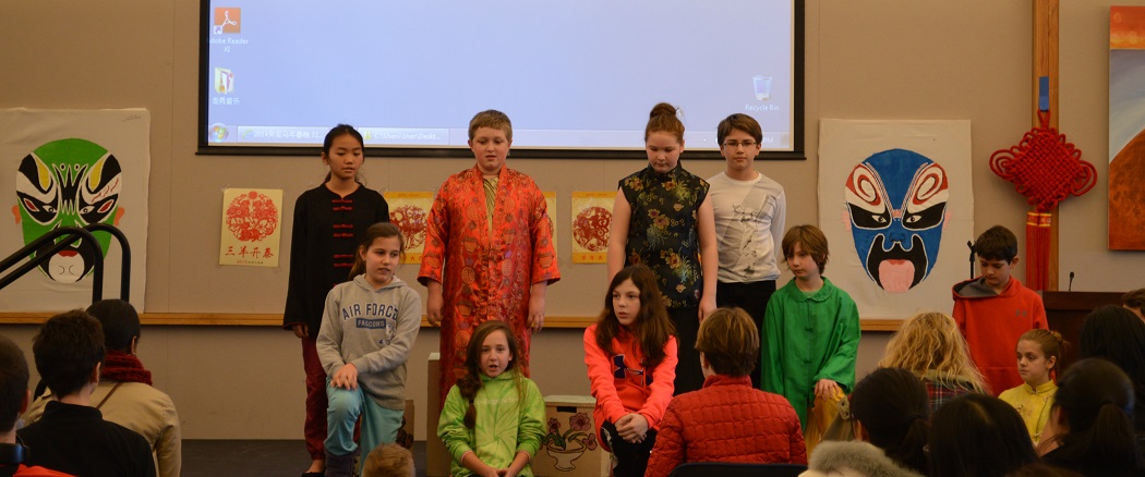 过年不可不知“年俗”,联欢首先在一场中国新年“习俗小科普”中拉开了帷幕;接下来,为了让前来的市民更加全面地了解中国风俗与文化,现场特地组织了一场“中华知识小竞赛”,观众热情十分高涨,纷纷踊跃参与,在主持人Cameron的引导下,积极思考并作答,答对问题最多的十位观众还获得了精美的小奖品;联欢活动还得到了当地College School中小学师生的积极响应和参与,五十余名活泼可爱的孩子为大家带来了精心编排的中国民间故事话剧,他们声情并茂,表演十分投入,将中国民间故事用一种新颖的方式呈现出来,颇具童趣;随后,一副精美的中国国画“三羊开泰”创作展示,表达了孔子学院对所有观众的新年美好祝愿;接下来,韦伯斯特大学孔子学院的志愿者教师们身着多民族的特色服饰,以各民族特别的方式向在场观众拜年。活动最后,观众学唱了经典新年歌曲《恭喜》,与演员们一起将美好的新年祝愿送给身边的家人和朋友。
