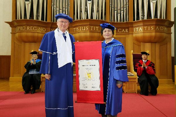 申一熙为许琳颁发荣誉博士证书