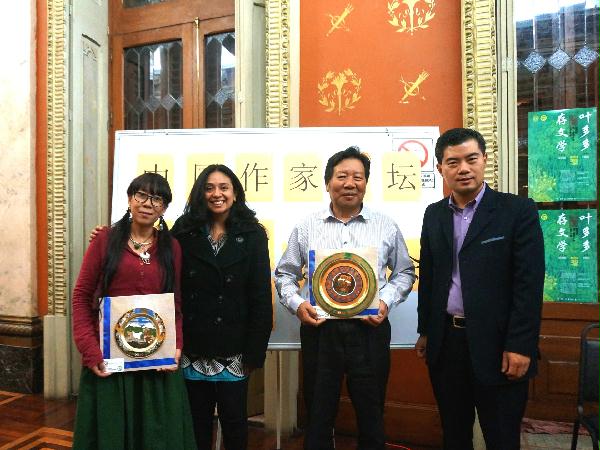 10月27日至31日,墨西哥国立自治大学孔子学院“中国作家论坛”迎来了中国作家协会会员、昆明文学院院长存文学和中国作家协会会员、“骏马奖”获得者叶多多。在近一周的访问中,两位作家在孔子学院、墨西哥学院及墨西哥古城区的博物馆进行了演讲,访问了阿纳瓦克大学,同墨西哥的作家、诗人、汉学家和学生进行了交流,推介了他们刚刚翻译成西班牙文的作品《碧洛雪山》和《澜沧拉祜女子日常生活》。存文学和叶多多两位作家分别来自云南哈尼族和回族,这是中国少数民族作家第一次参加孔院“中国作家论坛”项目。