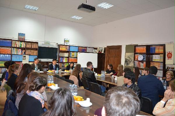 中国驻罗马尼亚使馆教育组负责人卞正东向校友们介绍了中国留学发展现状,表示留华留学生为推动中罗合作起到了桥梁作用,是双方经济合作、两国友好关系的民间使者,鼓励大家再去中国深造。