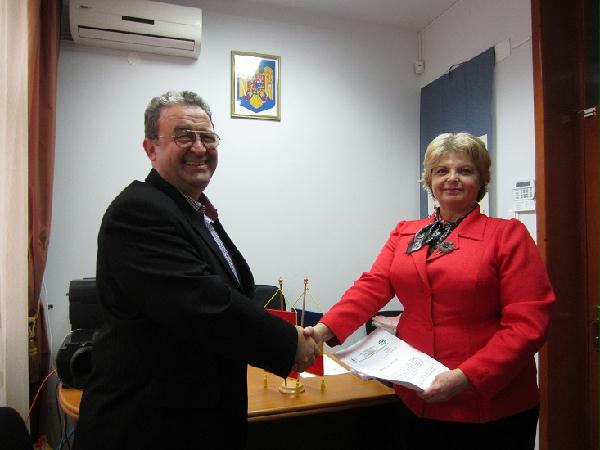 康斯坦察孔子课堂外方负责人Iolanda tighiliu金玉兰女士和国立“米尔恰大公”中学校长尼古拉(Vasile Nicoara)先生签署合作协议