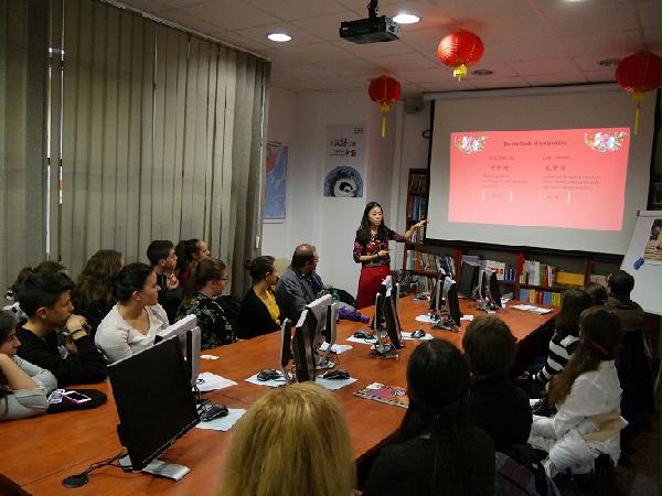 当地时间11月20日,罗马尼亚锡比乌孔子学院在锡比乌省图书馆汉语角举办了中国文化系列活动之“锦绣浮生---苏绣印象”主题文化活动。活动举办时正值锡比乌的磅礴大雨,但仍吸引了很多学生和社会人士前来参加。