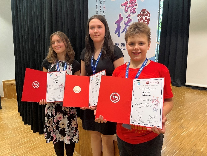 经过一轮激烈的角逐,代表波恩孔院的选手康文暄获得小学生组别的二等奖,马洁妮获得了中学生组别的二等奖,麦雅安获得了中学生组别的三等奖。波恩孔院对于此次选送的三名学生均获得优异成绩表示热烈的祝贺。