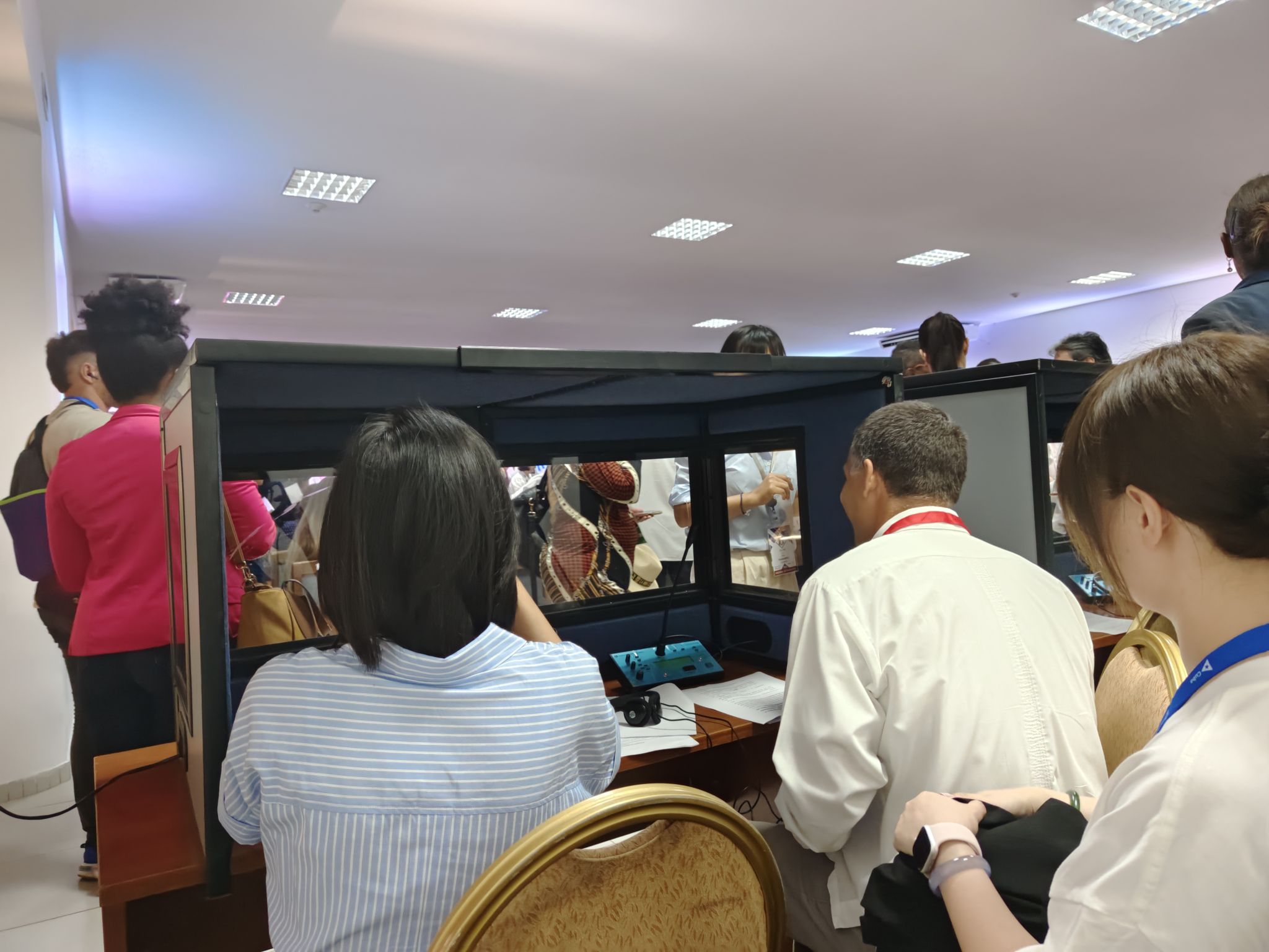 此外,孔子学院还在展会期间承担了大量语言翻译和文化交流的工作,为中古双方的沟通与合作搭建了桥梁。在博览会开幕式上,孔子学院为旅游部部长和省长发言提供汉语同声传译工作,为多语种嘉宾的同步理解提供了专业支持,确保大会信息精准传递。在“你好!中国”展区内,孔子学院师生分别为中国旅行社、中国国际航空公司及众信旅游等展位提供翻译和讲解服务,向国际嘉宾详细介绍中国丰富的旅游资源和文化特色。