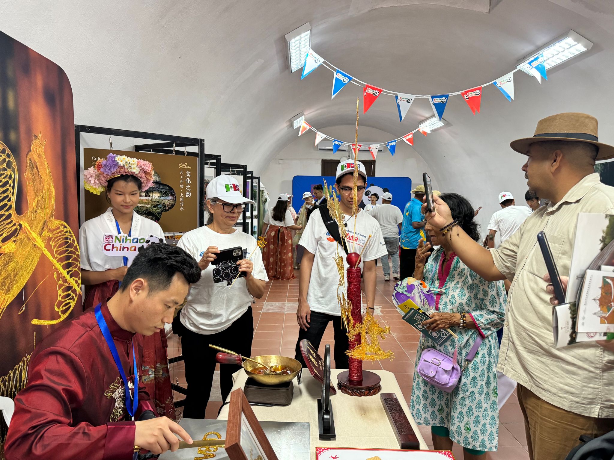作为古巴唯一的汉语教学与文化传播机构,哈瓦那大学孔子学院在此次中国主宾国展区的成功亮相中承担了多项重要任务,为活动的顺利开展提供了全方位的支持。从展区布置到文化活动策划,从翻译工作到艺术合作协调,孔子学院师生以高度的专业精神和文化使命感,充分展示了中华文化的独特魅力。在200平方米的“你好!中国”主宾国展区内,孔子学院协助策划并组织了中国世界遗产图片展、非物质文化遗产体验以及旅游推介会等系列活动,吸引了来自全球的850余名国际旅游业代表及2000余名古巴从业者。在非物质文化遗产展示环节,孔子学院团队协助开展了糖画、川剧变脸、簪花、非遗风筝、漆扇制作等具有浓厚中国传统特色的互动体验项目,为古巴民众和国际嘉宾营造了沉浸式的文化氛围,彰显中国传统文化的深厚底蕴。