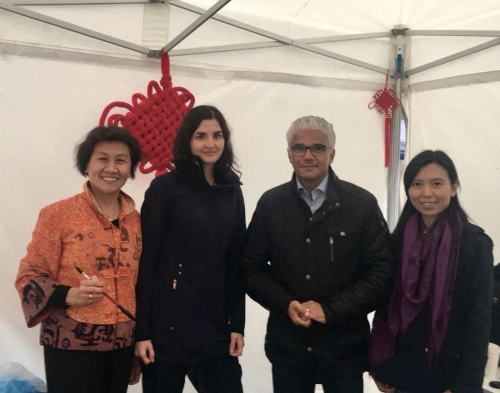 波恩市长Ashok Sridharan先生(右二)、书法家唐红老师(左一)及波恩孔院工作人员