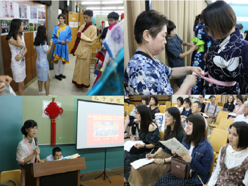 在“中秋明月节”暨第五个“孔子学院开放日”活动中,孔子学院及日中友好协会共准备了中国茶艺、日本茶道、中国剪纸、中国传统服装展示及体验、日本传统服装展示及体验、日本将棋等6项文化体验活动。中日茶艺表演吸引众多来宾,一杯杯中国清茶,一盏盏日式抹茶,承载着中日友好的情意,滋润着大家的心田。中日传统服装体验区域也是人头攒动,大家换上传统服装,以传统的礼仪互相问候。剪纸区域的12生肖剪纸,吸引了很多挑战者,精心地剪刻之后,收获了满意的作品。在日本将棋体验区有很多中国留学生围在那里学习日本将棋,了解中日象棋的不同之处。