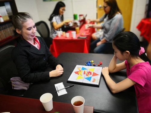 叶菡雅(Helen Yamada)母女一直是孔院的忠实粉丝,这次母女俩重温了跳棋,边下棋边熟悉学过的中文词汇,后来小菡雅还有模有样地学起了打麻将。活动快结束时,叶妈妈表示一定带着菡雅回来继续学中文。
