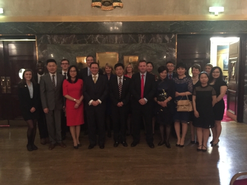 当晚,伯克戴尔中学于谢菲尔德市匠人大厅(Cutlers’Hall)举行庆祝晚宴。中国驻曼彻斯特总领事馆范映杰副总领事、刘威领事,谢菲尔德大学国际机遇与交流部负责人多特·史蒂文斯(Dörte Stevenson),谢菲尔德市中国事务经理许自荫(Ben Hui),谢菲尔德大学国际事务部中国事务主任/孔子学院英方院长赵霞、孔子学院中方院长居峰等出席晚宴。