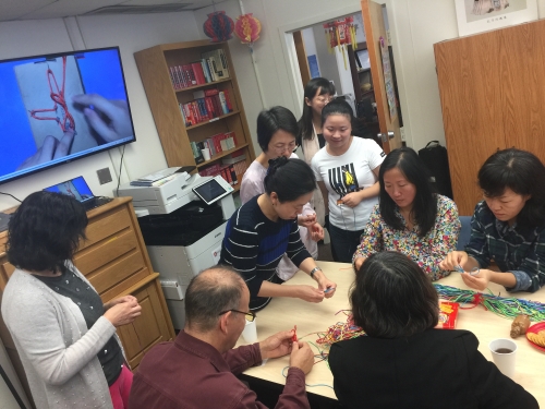 讨论环节后,老师们饶有兴趣地跟随孔院的于天昱老师一起学习“吉祥节”的手工编制。携带满意的作品离开时,他们纷纷感谢孔院为老师们中文教学和文化活动提供的帮助指导,工作坊的话题和活动设计用心、接地气,为老师解决了大量实际需求,老师们深感贴心、暖心。