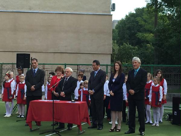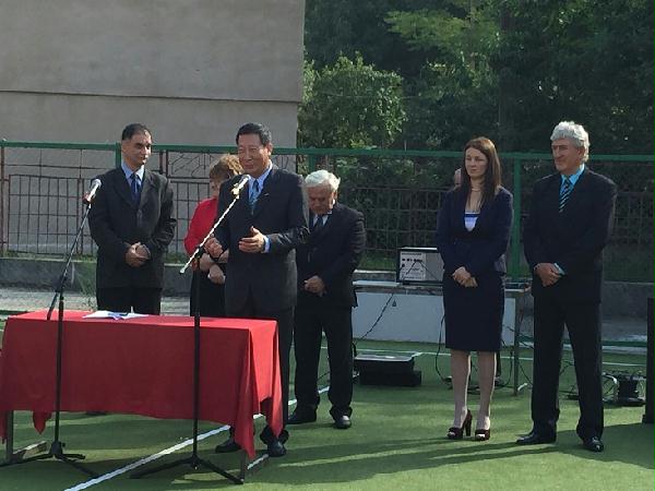 当地时间9月14日上午9点,德瓦市艺术中学在本校操场举行了罗马尼亚锡比乌孔子学院德瓦孔子课堂暨学校新学期开学典礼,德瓦艺术中学校长米胡茨(Gheorghe Mihuț)先生,锡比乌孔子学院院长宋少峰先生,德瓦市副市长切尔加·坎先生(Cerga Dan),德瓦市督学处学监阿德里娜女士(POPA ADRIANA )应邀出席了典礼并致辞。