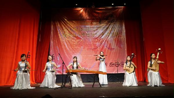 当地时间9月26日,为庆祝“2015年全球孔子学院日”,墨西哥国立自治大学孔子学院邀请中国中山大学学生艺术团来墨,为墨西哥城广大的汉语爱好者和中国迷献上了一场精彩的文化盛宴。墨国大外语教学中心负责人玛格达莱纳、墨国大孔院外方院长珍妮、中山大学团委书记吴丹、尤卡坦自治大学孔院中方院长张哲以及墨西哥多家媒体、华人社团领导等嘉宾出席并观看了演出。
