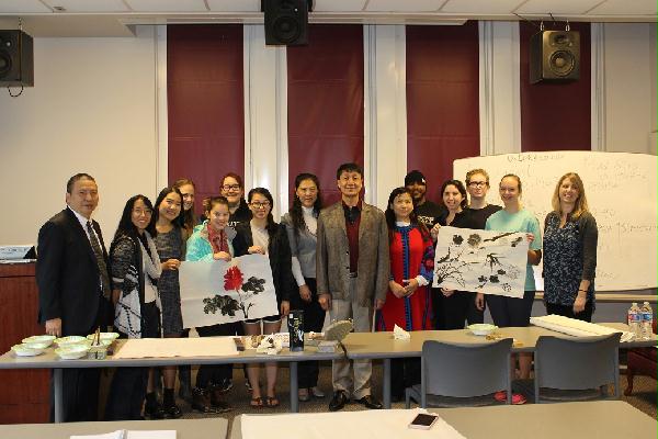 2015年10月28日,应美国南卡大学孔子学院、南卡大学视觉艺术与设计学院和亚洲研究中心之邀请,中国当代著名画家、齐白石第三代传人、墨玉兰画法创始人胡乐平先生,为南卡大学专修亚洲艺术史的学生和喜爱中国绘画的热心人士举办了两场“齐白石与中国写意画”专题讲座。胡乐平先生展示了其精湛的中国传统写意画技法,并生动细致地向听众介绍了中国画大师齐白石先生的生平及其对中国美术的卓越贡献。在讲座现场,胡乐平先生还与听众互动,回答听众提问,给大家留下了深刻印象。