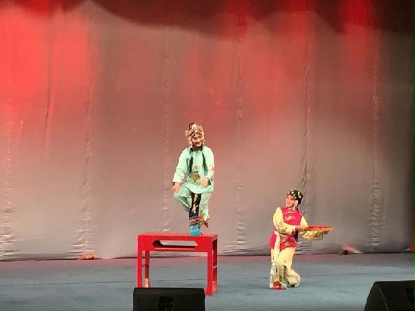 在德瓦市人民期盼中,中国国粹京剧演出《粉墨中国》惊艳登场。演出分为《三岔口》、《挂画》、《天女散花》、《游街》、《虹桥赠珠》。《三岔口》和《虹桥赠珠》中精彩的武戏打斗场面,让德瓦市民们惊叹不已,阵阵叫好。《挂画》和《天女散花》柔美的身姿,以及绚烂的水袖和绸带,引得观众们不停的拍照,想要记录下每一个美丽的瞬间。《游街》武大郎让人忍俊不禁的姿势,让观众们大笑不止,当他们发现这个看起来小小演员其实是个高大的帅小伙时,纷纷露出了惊讶的表情。观众们都沉醉在中国京剧艺术那一个个精彩的亮相,一曲曲优美的唱腔中。