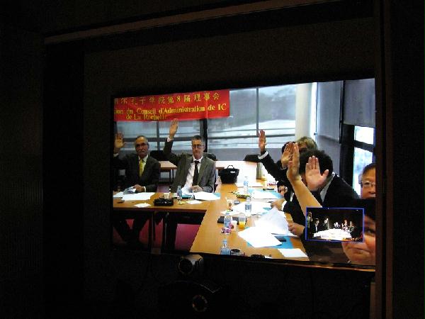 11月20日北京时间17:00,法国拉罗谢尔孔子学院2015年理事会在807会议室以远程视频会议形式顺利召开。校党委书记、拉罗谢尔孔院理事长李宇明教授,副校长、理事会副理事长戚德祥教授,国际合作与交流处处长兼孔院处处长张宝钧教授、拉罗谢尔大学校长热拉·布朗查尔教授、拉罗谢尔城市共同体负责外交和国际合作事务副主席米歇尔·萨巴捷尔先生和拉罗谢尔城市共同体负责高等教育和大学事务副主席丹尼尔·伐约先生出席了会议。参加会议的还有拉罗谢尔大学人文科学学院院长劳航·欧杰教授、拉罗谢尔孔院法方院长马丁娜·海博教授、拉罗谢尔孔院中方院长韩祝祥教授、孔院新任中方院长冀可平教授及校孔院处相关工作人员。会议由张宝钧教授主持。