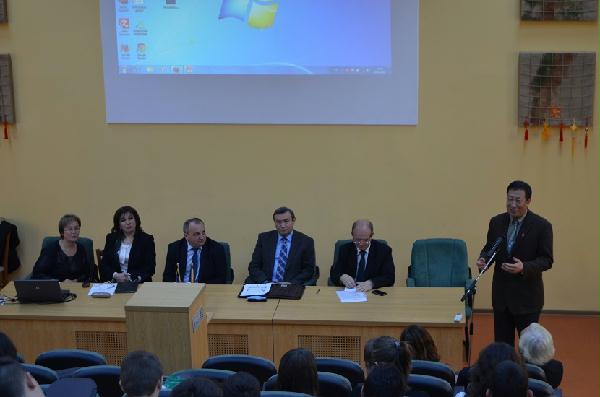 随后,哈尔吉塔省中央特派员阿德里安(Andrei Jean-adrian)先生热情接见了康斯坦丁·奥普雷安(Constantin Oprean)校长、宋少峰院长及汉语课堂的教师们。阿德里安先生刚刚从上海考察归来,在亲切的交谈中,他言语之间充满了对中国的热爱,并不禁赞叹于中国经济的快速发展。他说:“我为你们中国人有这样一个国家感到骄傲和自豪,我也要和你们一起,为中罗友谊做出自己的贡献。”