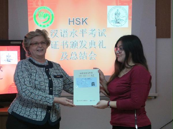 当地时间12月7日,锡比乌孔子学院康斯坦察孔子课堂图书馆洋溢着学员们“学好中国话,收获你我他”的热情喜悦氛围。这是康斯坦察孔子课堂在举办HSK汉语水平考试证书颁发典礼及总结会。康斯坦察孔子课堂主任金玉兰教授、康斯坦察孔子课堂任教老师王玉琴、刘征为66名汉语学员颁发了HSK汉语水平考试证书并对2015年汉语教学工作进行总结。