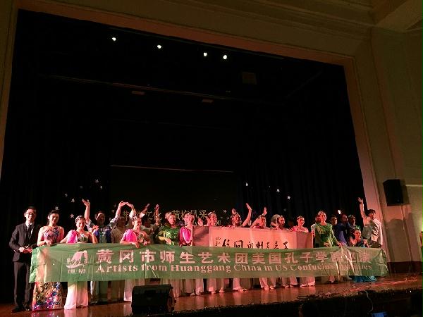 隆重的揭牌仪式之后是来自黄冈师生艺术团带来的中国戏曲音乐和舞蹈艺术大型汇演。作为总部三巡文艺演出,此艺术团整合了黄冈师范学院师生和专业艺术家,其中包括中国戏剧最高奖“梅花奖”得主,5次参加春节联欢晚会的黄梅戏演员以及知名的武术家和书法家等。节目形式丰富多彩,包括民乐演奏、民歌演唱、民族舞蹈、书法展示和岳家拳武术表演,同时还有用英语和汉语演唱的欧美经典歌曲。特别值得一提的是,黄冈作为中国黄梅戏之乡,为当地民众带来的经典黄梅戏曲表演,令人耳目一新。高水准的演唱和舞蹈打动了现场观众。很多观众是第一次看到这样华美地道的中国民间艺术表演,他们纷纷盛赞:“这场演出的水准以前只有在国家级艺术中心才能看到,真没想到在我们哈迪中学也可以欣赏到!太美了!孔子课堂项目一定会在这里不断发展。” 还有一位学生家长表示之前一直把自己的孩子送到课外语言学校学习汉语,在孔子课堂成立后终于可以在自己的学校学习了。揭牌仪式暨演出持续了近两个小时,盛况空前。