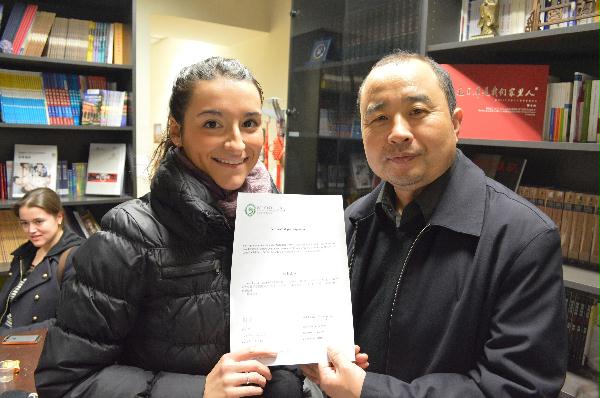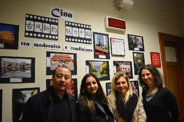 接着,前来的学生欣赏了摄影展照片,并为作品投票。摄影比赛是圣心孔院历年的新年活动之一,赛后,孔院会选取摄影比赛优秀作品,印刷日历。本次摄影比赛主题为“古风新韵、魅力中国”,旨在通过此次比赛,全面展示中华民族悠久灿烂的文明,同时引导大家用发展的眼光看中国,发掘中国的新变化,欣赏中国传统与现代交织的独特魅力。本次摄影比赛共收到作品43幅,其中既有古老庄重的西安城楼,也有高楼林立的城市街头;既有竹林流水的清幽素雅,也有民间表演的悦动风采,不乏优秀之作。最后,我们根据观众投票进行评选,一张名为《起居作息》的作品夺得了头奖。这张照片以云南小镇,鲜花盛开的小巷为背景,展现了古朴淳厚的乡间风情,明丽生动,充满生机。张贴在孔院墙壁上摄影作品,正是意大利人了解中国的窗口,是中国魅力的最好代言。