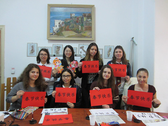 为庆祝中国农历新年的到来,当地时间2016年2月1日至3日,锡比乌孔子学院康斯坦察孔子课堂分别在“乔治·格林奈斯库”中学、国立“米尔恰大公”中学、奥维第乌斯大学图书馆等汉语教学点举办了一系列新春庆祝活动。
