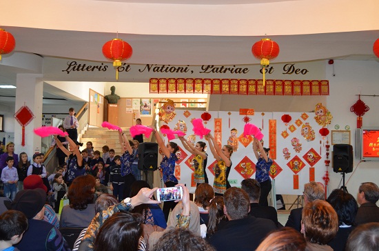 当地时间2月5号,锡比乌孔子学院大型春晚在卢奇安·布拉加大学拉开帷幕。演出现场座无虚席,三百多位市民及政界要员、新闻媒体人士都观看了此次表演。来自卢奇安·布拉加大学的学生以及锡比乌五所中小学的百余名学生参加了演出。市教育局局长斯特凡(Stefan Firu) 、中文学监劳拉( Laura Pitariu)(罗马尼亚教育部新增岗位,首次设立中文学监) 、 卢奇安·布拉加大学校务委员会主席康斯坦丁•奥普雷安(Constantin-Oprean)、卢奇安·布拉加大学校长邦德雷亚(Ioan Bondrea)、副校长利维娅(Livia Ilie)、副校长克劳迪乌(Claudiu V. Kifor)以及大学各院系主任等观看演出。卢奇安·布拉加大学校务委员会主席康斯坦丁•奥普雷安(Constantin-Oprean)发表讲话,感谢宋少峰院长为孔子学院蓬勃发展做出的杰出贡献,并祝锡比乌孔子学院的全体教师春节快乐。中央特派员公署也派要员参加,并和宋少峰院长亲切交谈,他向中国人民致敬,祝中国人民新春愉快。除此之外,当地国王小学校长、少年宫主任等都到演出现场观看节目。浓厚的中国春节气氛也吸引了罗马尼亚国际广播电台、天线一台、普罗(Pro)电台等多家新闻媒体前来报道。