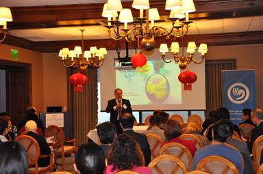 此次高端商务论坛以中华专业人士协会会长曾冰女士的致辞开始,曾冰女士简要回顾了协会的历史,并表明协会的宗旨是协助华人华侨在各领域与中国的经贸往来,促进双方在互利互惠的基础上实现中国梦和美国梦。接下来,佐治亚州立大学孔子学院副院长Kimberly Griffin及亚特兰大世贸中心主席Dawn Ely女士先后致欢迎词。本次论坛的主讲人是可口可乐公司的执行副总裁Ahmet Bozer先生。他的发言首先以图表的形式展示了中国改革开放以来的历史和基本国情,并谈到中国地大物博、人口基数大、中美两国在经济管理体系上也有较大的不同。这些对于以可口可乐公司为代表的跨国企业来说既是机遇也是挑战。Bozer先生以可口可乐公司自1949年撤出中国大陆,又于1970年重返中国的经验为例指出,企业只有主动适应市场的变化、充分考虑消费者的需求,才能在市场竞争中更具优势。他更引用孙子的“善战者,求之于势,不责于人”进一步说明,企业在市场竞争中的胜败关键是能否敏锐地把握、运用和创造有力的形势和发展的趋向。