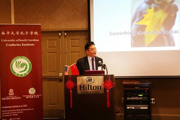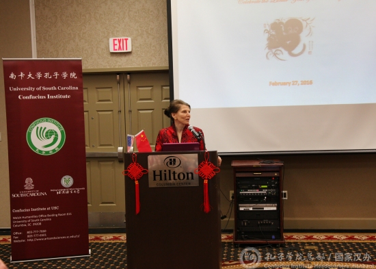 当地时间2月27日,美国南卡罗莱纳大学孔子学院举办猴年新春招待会。南卡州教育厅、各学区相关负责人,哥伦比亚公共图书馆、华人协会代表,以及南卡大学相关负责人、知名学者等140余人欢聚一堂。孔院中方院长梁清担任主持。