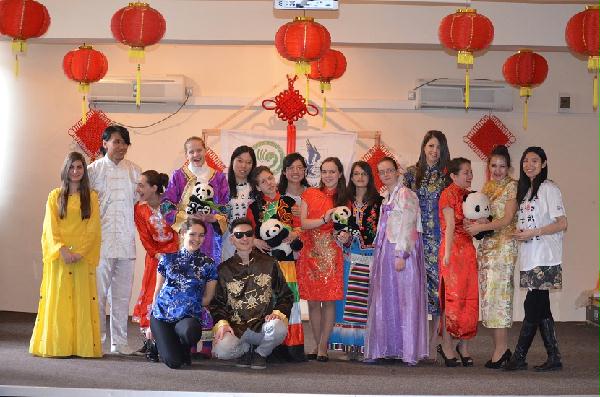 接着,吉他弹唱《阳光总在风雨后》又将观众拉回了现实,温暖的歌词,舒缓的旋律似乎赶走了锡比乌的寒冷,让人如沐春风;歌舞《青花瓷》美轮美奂,芭蕾舞《白毛女》更是被学生演绎的传神生动,短短几分钟就尽现了喜儿的喜怒哀乐。值得一提的是,本次活动可谓是师生“共襄盛举”,汉语教师志愿者于国宁的二胡伴奏让学生们的舞蹈增添了中国风情,马骏的太极功夫扇不时吸引着全场的闪光灯,现场观众纷纷拿起手机,企图记录一招一式,留下精彩瞬间。