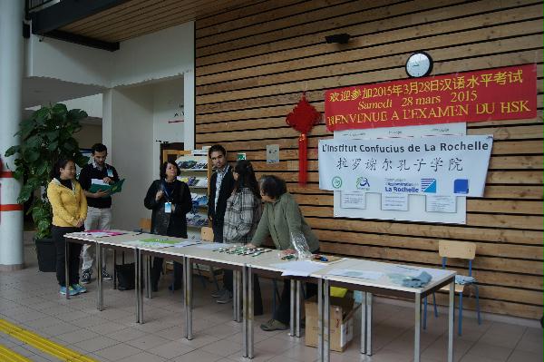 3月28日,法国拉罗谢尔孔子学院举行本年度第二场HSK及HSKK汉语水平考试。本场汉语水平考试是应本地广大考生的要求、并为配合国家汉办下一年度奖学金生的招募而特别增设的。HSK设置了一至三级,HSKK设置了初级和中级,共有71人报名参加考试。