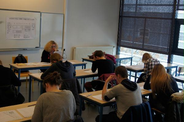 考试于当日上午9点正式开始,最后一场口试至下午5点顺利结束。考试全程有条不紊、规范有序。此次考试共设6个考场,为保证考试当天各项工作有序开展,除孔子学院院长、教师、志愿者外,孔院还请来了拉罗谢尔大学的汉语教师以及当地中学汉语教师协助完成考务工作。