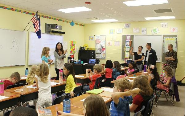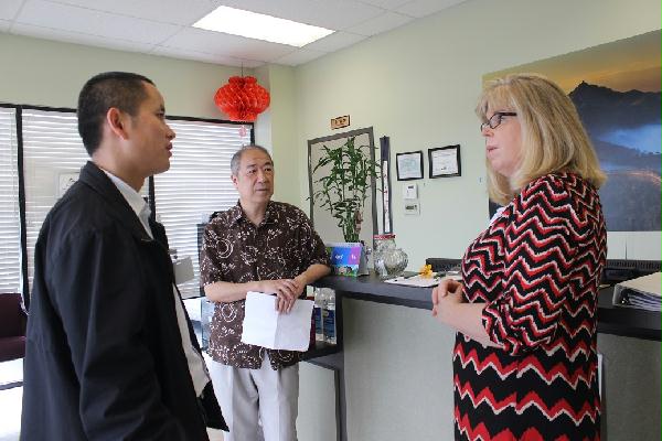 离开课堂,赫德老师随即与东点学校校长Renee Mathews女士、校董会吴宪先生以及南卡科技学校课程负责人Grigg女士分别进行了会谈,详细了解两所学校的汉语教学情况,志愿者教师们的工作表现,也听取了两所学校对志愿者教师项目的期待。