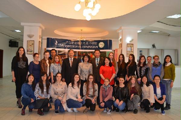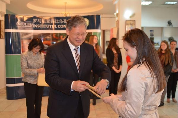 参观期间,徐大使与卢奇安·布拉加大学中文专业学生及锡比乌孔子学院的汉语教师进行了简短的座谈会。一一回答了学生们提出的问题,并鼓励学生学好汉语,早日实现自己的中国梦,与锡比乌孔子学院汉语教师一起搭建中罗友谊的桥梁。