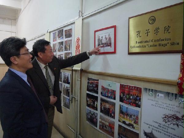 座谈会结束后,代表团一行来到锡比乌省图书馆汉语角进行参观,与孔子学院教师交流、讨论了锡比乌孔子学院的发展问题,共同表示希望能够通过本次中罗经济论坛加强中罗合作发展、共谱中罗美丽篇章!