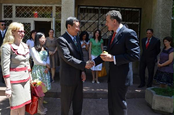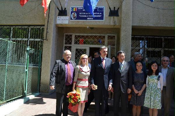 活动伊始,斐迪南国王学校米哈伊校长(Frincu Mihai)向拉杜亲王介绍了学校与锡比乌孔子学院的文化交流与合作以及开设汉语课的情况。他表示汉语课已经成为了该校的一大特色,在锡比乌孔子学院的协助下,学校还与鲁迅中学签署交流合作意向备忘录。