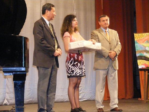 宋少峰院长对于德瓦市“西吉斯蒙德•托杜策”艺术中学推广汉语语言及文化所作出的杰出贡献,做出了高度的赞扬。对锡比乌孔子学院和德瓦“西吉斯蒙德•托杜策”艺术中学孔子课堂的亲密合作给予了肯定,并给予了殷切的期望。也真诚地表达了对孩子们的祝贺,特别是对汉语课堂的学生们寄予了厚望。并为近20多位2014-2015学年优秀毕业生颁发了结业证书,以鼓励他们在汉语课堂上的优异表现。其中优秀学生爱丽(Stan Alexandra)获得了第八届“汉语桥”世界中学生中文比赛罗马尼亚赛区二等奖的好成绩,受到了特别嘉奖。