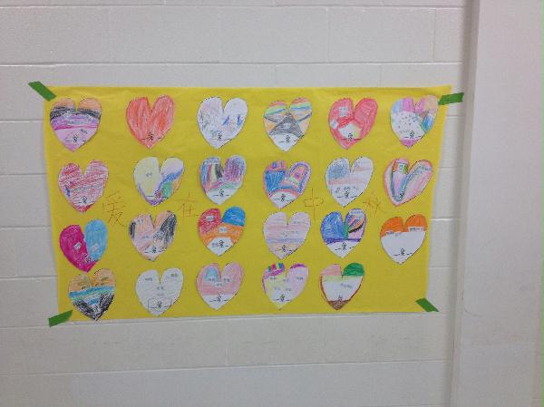 老师让学生们制作爱心以及家庭成员的绘画与汉字