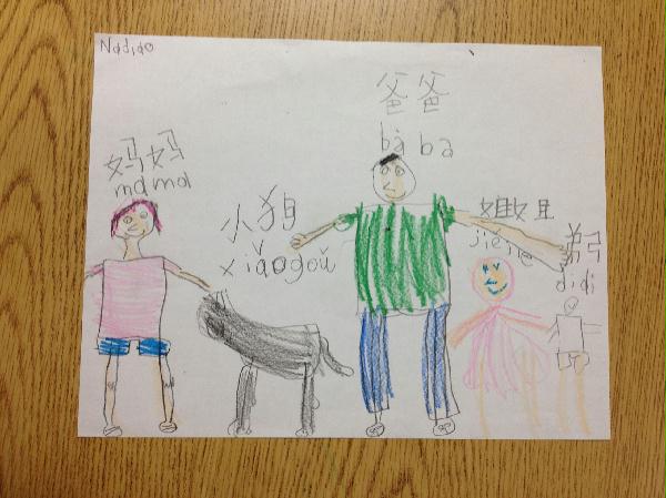 学生们的画虽然达不到大师级的水平,但是感情非常真挚,而且更让人想象不到的是有些汉字老师还没有教他们如何写,比如奶奶,小狗,已经有学生开始自己学习汉字的写法,这让大家深深感动。