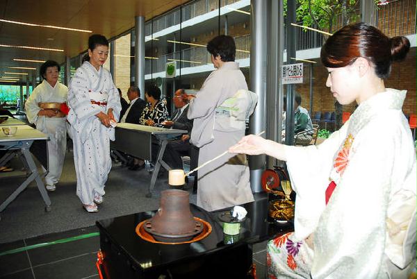 晚会分为中日文化体验、文艺演出、品尝中国美食三个阶段。第一阶段的文化体验活动设有中国剪纸、中国结编织、中国传统服饰试穿、中日象棋对弈、中日茶艺体验五个环节。每个环节都吸引了不少热心参与的市民和学生。在中国传统服饰试穿环节,设有展示中日两国不同特色的传统服饰,参加者纷纷试穿并拍照留念,连竹内市长也加入到了试穿的队伍中来了。在中日茶艺体验环节,日本茶道表演与中国茶艺体验相邻而设。大家先品尝了芳香浓郁的中国茶,聆听源远流长的中国茶文化。随后,即可进入日本茶道的“和静清寂”境界。通过茶文化的媒介,进一步理解了中日两国友好交流的悠久历史。