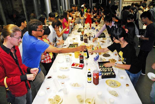 第三阶段是品尝美食的阶段。每张桌子上都摆满了孔子学院准备的月饼、水饺和日本寿司。伴随着大家的欢声笑语,热气腾腾的饺子成了最为抢手的食物。晚会接近尾声,参会者们有相互交换联系方式的,也有合影留念的。“这次活动举办得非常成功,为我们日本人了解中国提供了一次宝贵的机会。”一位市民如是说。