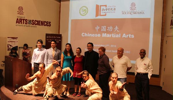 当地时间9月27日,时值全球孔子学院共庆孔子学院十周年之际,南卡孔院特邀国内少林武术表演团给南卡师生和当地居民呈现了一台精彩纷呈的中国功夫表演。来自南卡大学的师生以及当地居民约150人观看了此次演出。