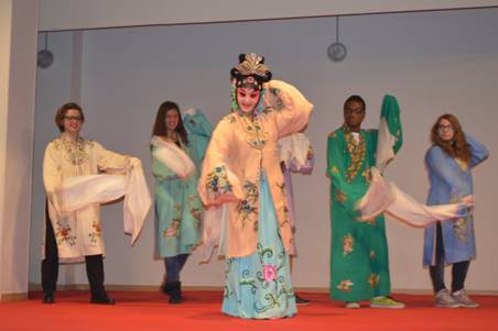 图二:意大利高中生向青衣演员学习甩水袖