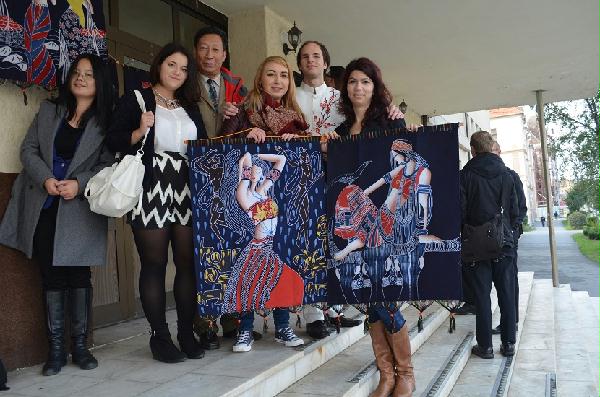 罗马尼亚锡比乌孔子学院举办“孔子学院日”蜡染艺术展师生合影