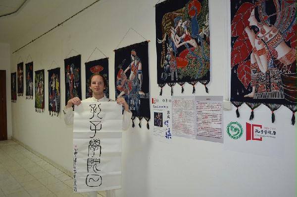 锡比乌孔子学院优秀学员易博(Paraian Mihai)还为“孔子学院日”献上了自己的篆书作品。他表示:“感谢孔子学院,通过孔子学院,我了解到了中国的悠久历史和博大精深的文化,尤其是篆书艺术。中国老师热情、友好,祝孔子学院生日快乐!”