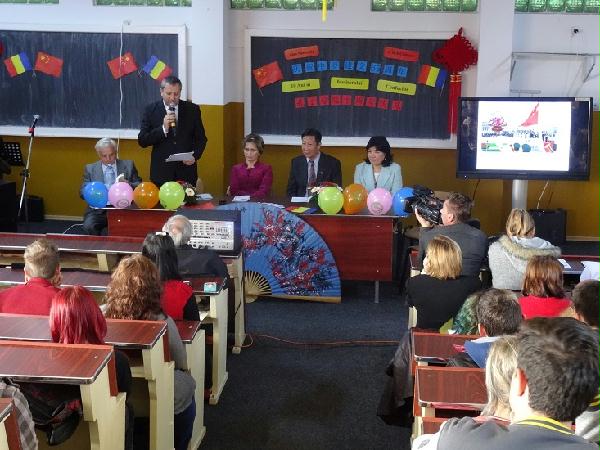 德瓦艺术中学校长米胡特(Gheorghe Mihuț)先生在活动中发表了讲话,感谢了锡比乌孔子学院为德瓦艺术中学的汉语教学点的蓬勃发展提供的有力支持,对孔院为双方合作做出的努力做出了高度的评价,期望合作能够继续长期友好地发展下去。向在场的师生们介绍当今中国经济迅速发展的总体趋势。回顾了中国悠久的历史文明并高度赞扬了中国人民的友好、热情以及努力、认真的工作态度。希望共谱中罗友谊的新篇章。