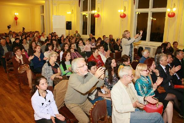 中国地质大学艺术团展现出了丰富多彩的艺术形式。既有独具中国民族风情的民乐合奏、傣族舞蹈,也有铿锵有力、享誉世界的功夫表演。精心编排的湖南民歌《龙船调》,其别开生面的互动表演形式,令人耳目一新;一曲罗马尼亚民歌《照镜子》更是引得现场观众阵阵掌声,将现场气氛推向高潮。最后在《友谊地久天长》的歌声中,整场演出圆满完成。结束后,现场观众更是走向争相走上舞台,同来自中国的演员合影留念。